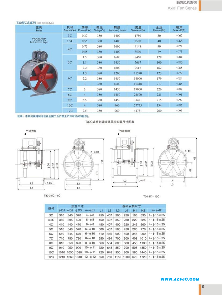 九洲風(fēng)機(jī)|T30A/C軸流通風(fēng)機(jī)(belt driven/motor diretly dnven type) axial fan