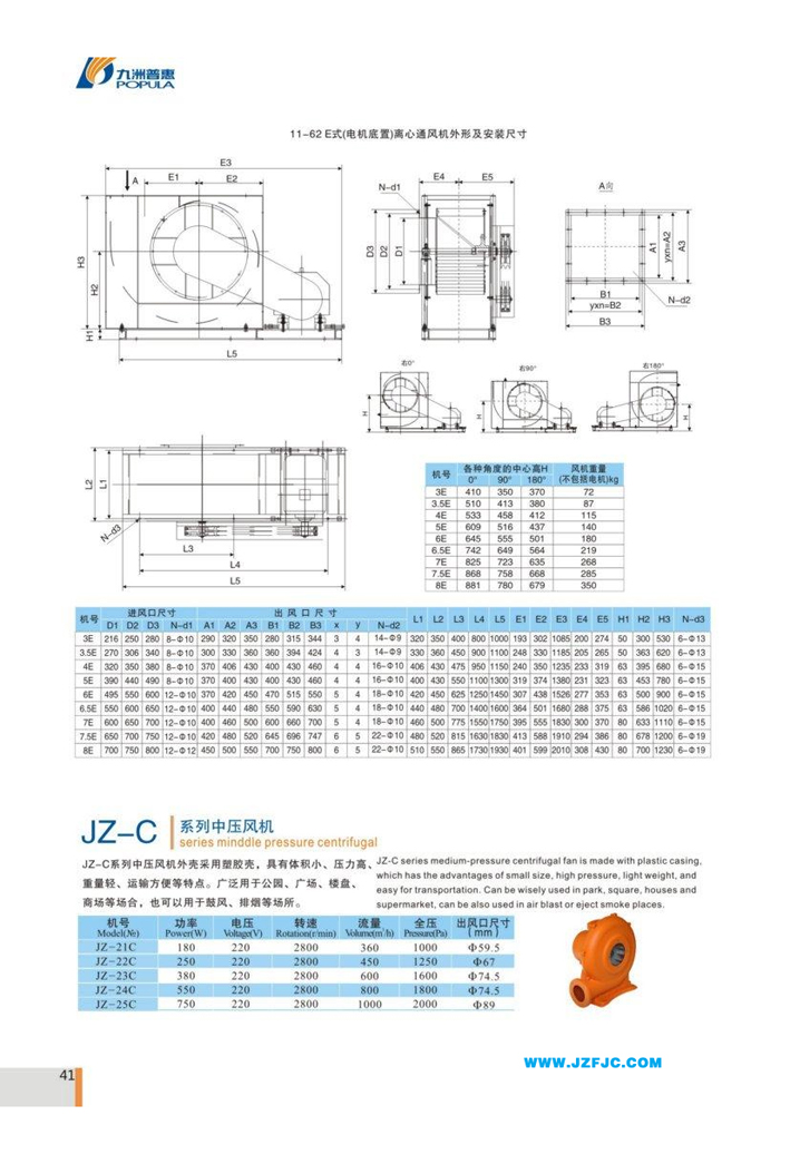 11-62(E式) 多翼型離心通風機multi- blade centnfuga